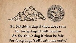 So why the legend about weather? On his deathbed, Swithin asked that he be buried in a cemetery outside Winchester Cathedral. But after his death, leaders felt he deserved a more fitting memorial that would involve moving his body inside the massive church and placing it in an ornate shrine. On July 15, 971, more than 100 years after his death, monks disinterred his body from the graveyard and began moving it into the cathedral. Immediately outside the church, a violent storm erupted which began an onslaught of heavy rain that continued for — you guessed it — 40 days. (Nothing remains of St Swithin’s shrine, which was destroyed during King Henry VIII’s Reformation, but there is still a memorial to him in Winchester Cathedral). https://www.winchester-cathedral.org.uk/
