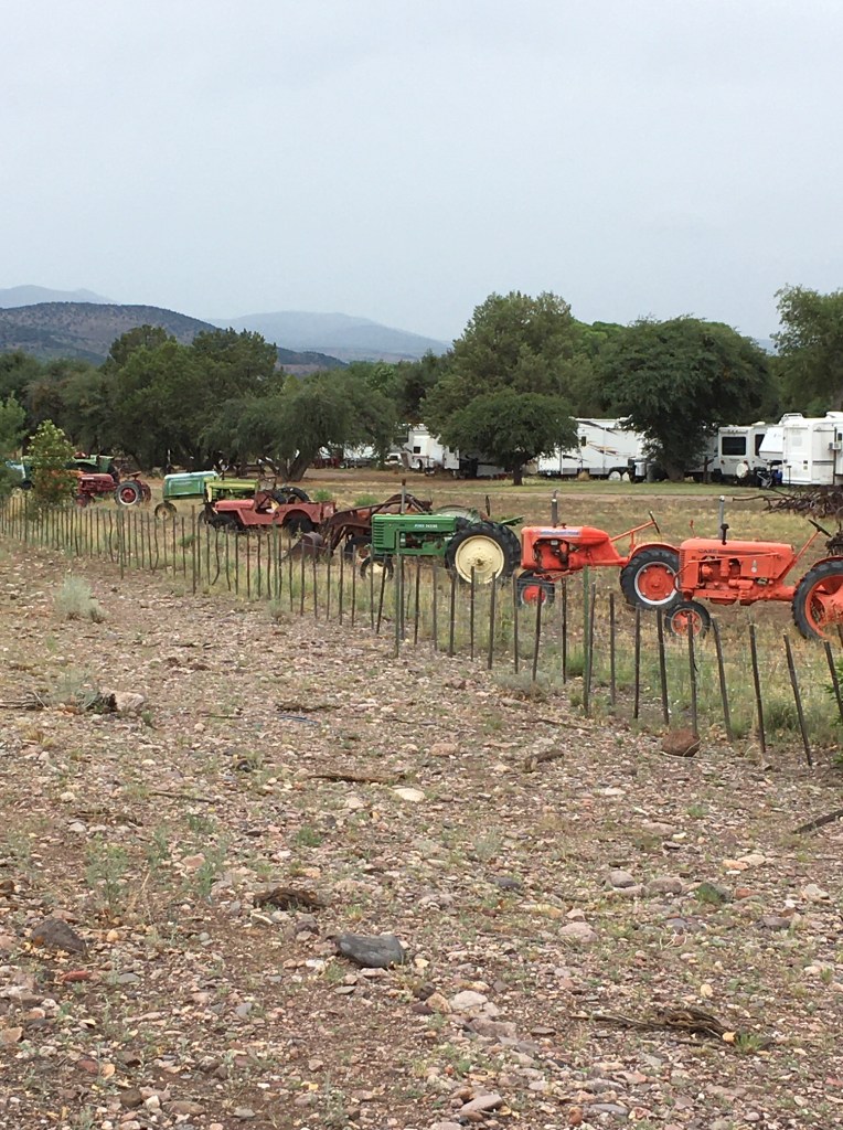 Located just east of Alma on the edge of the Gila Wilderness is this half-mile row of classic farm tractors of just about every American make, many no longer manufactured. It looks like the tractors just grew out of a big garden. I also noticed, like a weed poking up between your rows of vegetables, there’s an old Jeep.