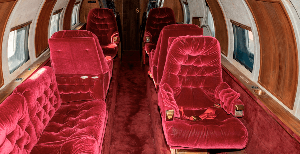 The plane, complete with a red velvet interior, was a 1962 Lockheed Jetstar that was considered to be the first of corporate jets. It was one of several planes that Elvis owned and somehow ended up wasting away in New Mexico for 40 years after he sold it.