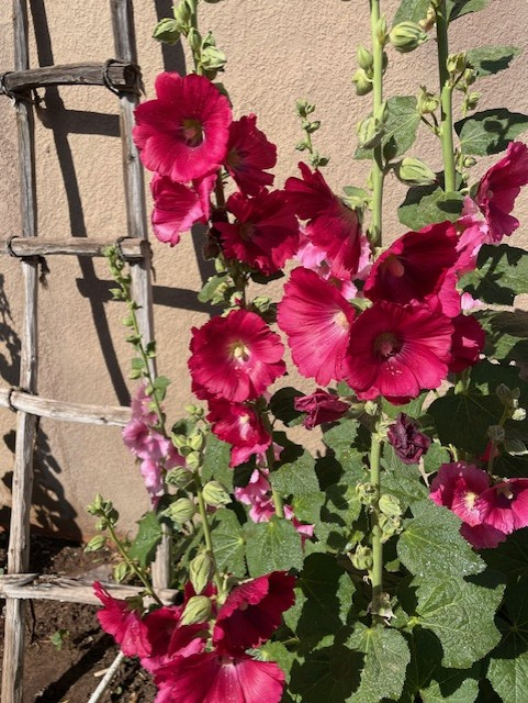 I also looked up hollyhock lore and discovered that in New Mexico, they are often called Las Varas de San Jose. Here’s an article I found on the interenet: