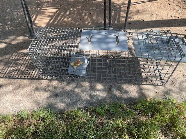 So I began a squirrel capturing regimen again yesterday. As usual, I place a pecan half on a mound of peanut butter on top of a cracker and place it in the back part of the trap. When the squirrel goes to grab the pecan, peanut butter, cracker gourmet snack, their weight is supposed to trigger a mechanism that closes the flap at the end of the cage.