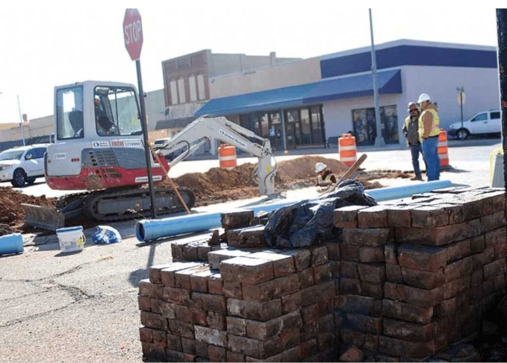 I did, however, suspect that the next closest thing to cobblestone streets would be streets paved with bricks, most likely in cities in eastern New Mexico. Many towns in west Texas that I’m familiar with had brick paved streets, particularly in the downtown areas. Lubbock and Amarillo specifically come to mind. Some brick streets in Lubbock were partially built by the Works Progress Administration, an effort by Franklin D. Roosevelt’s “New Deal” program to pull America out of the Great Depression. None of Amarillo’s streets appear to have been constructed by the WPA.
