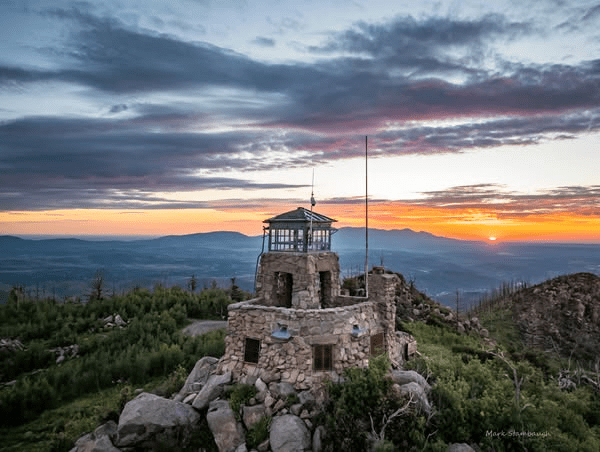 One of the most memorable structures near Ruidoso that was done by the WPA was the Mon Jeau lookout tower, a few miles north of the city on the top of a 9,603 foot high ridge. Beautifully constructed of rock in the late 1936 and then updated in 1940, the tower overlooked the northern part of the Lincoln National Forest. It was seriously damaged during the Little Bear 2012 forest fire which raged through area. It was always one of my favorite places to go when I was growing up in Ruidoso.