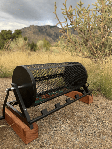 Their idea was to mount a table-top chile roaster on a wooden platform, with the logos of each school literally burned into the wood that holds the metal contraption.