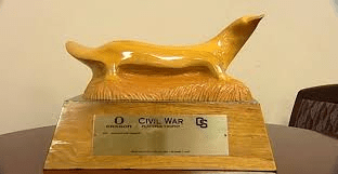 Oregon and Oregon State just competed for the platypus trophy, a wood carving of an animal that appears to capture the features of both a duck and a beaver — those schools’ mascots.